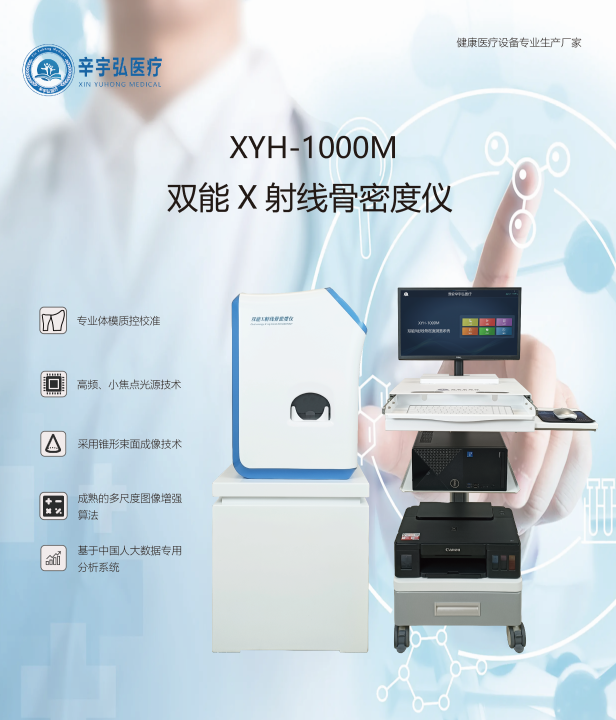因此,推荐您关注下“辛宇弘”XYH-1000系列的双能X射线骨密度仪设备,它们能够适用于不同的用户群体,同时采用锥形束面双成像技术,可以有效保证检测的准确性。
